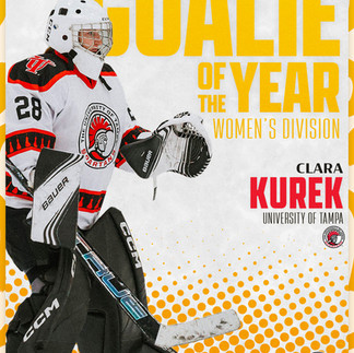 Goalie of the Year: Clara Kurek, University of Tampa: 6-0-0, 1.33 GAA, .941% SV%, 2 SO