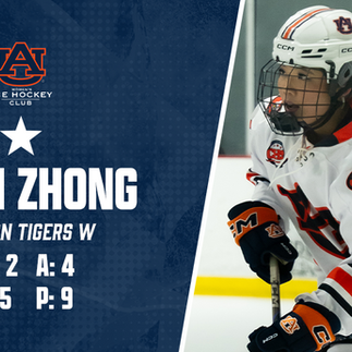 1st Star - Averi Zhong, Auburn University (W) - 5 Goals, 4 Assists, 9 Points in 2 Games Played